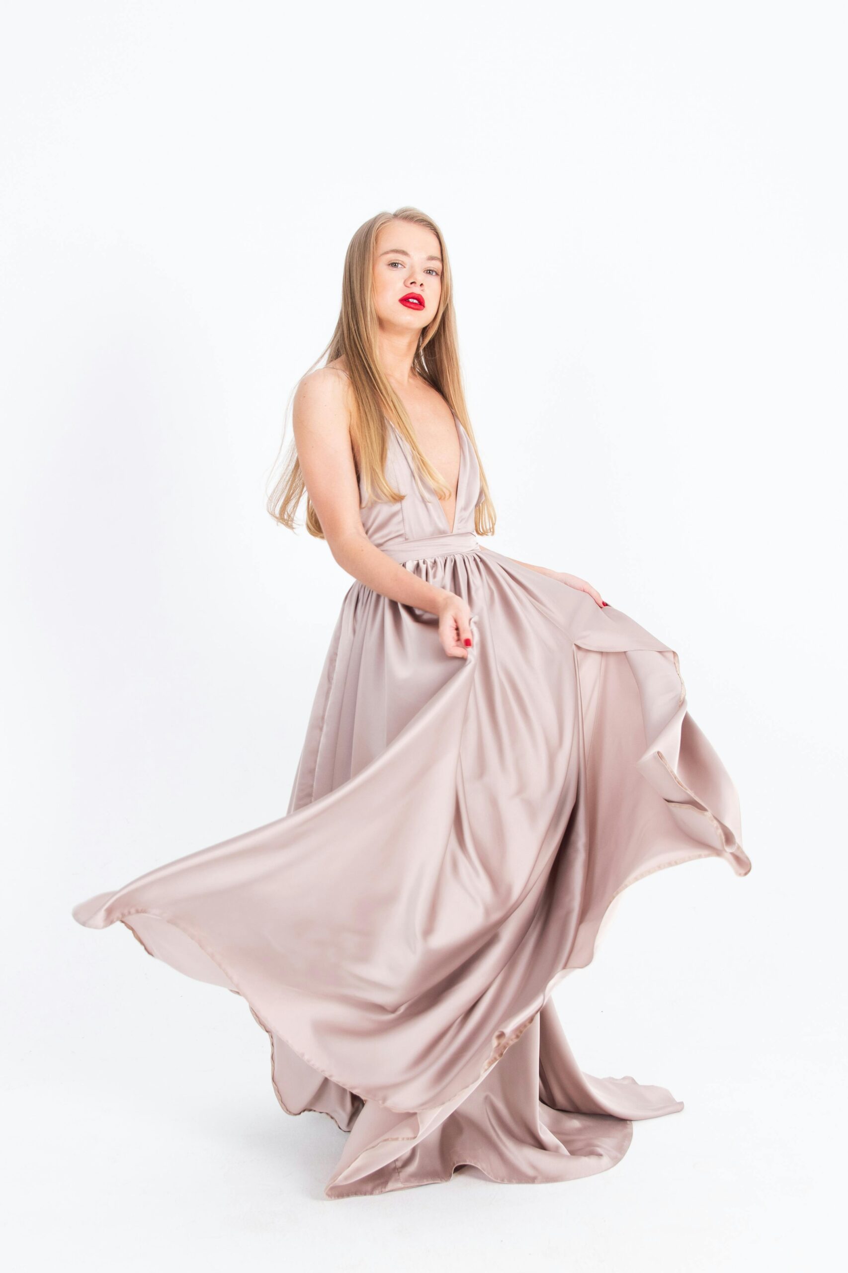 An asymmetrical dress is a garment with an unconventional hemline that varies in length, creating an asymmetric silhouette. This design often features one side longer or shorter than the other, adding visual interest and a dynamic flair to the dress. It can be sleeveless, have one sleeve, or feature varying sleeve lengths. Asymmetrical dresses come in various styles, from casual to formal, and are versatile enough to suit a range of occasions. They offer a modern and edgy twist to traditional dress designs, making them a popular choice for those seeking unique and fashion-forward attire.